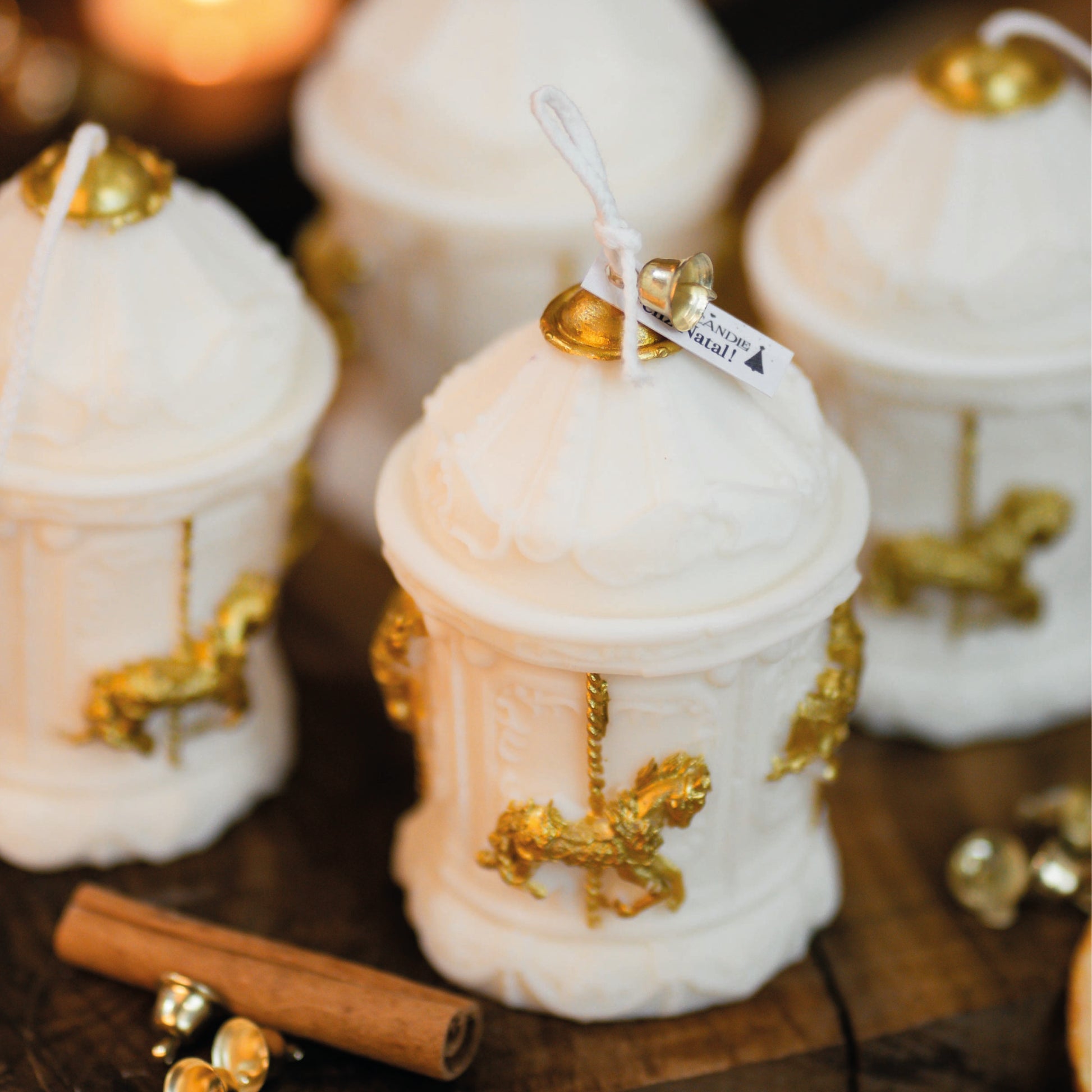 O nosso Carrossel, uma linda vela decorativa que nos remete para as mais belas memórias de natal na nossa infância. Uma linda e cheirosa vela decorativa para si ou para presentear quem mais ama.