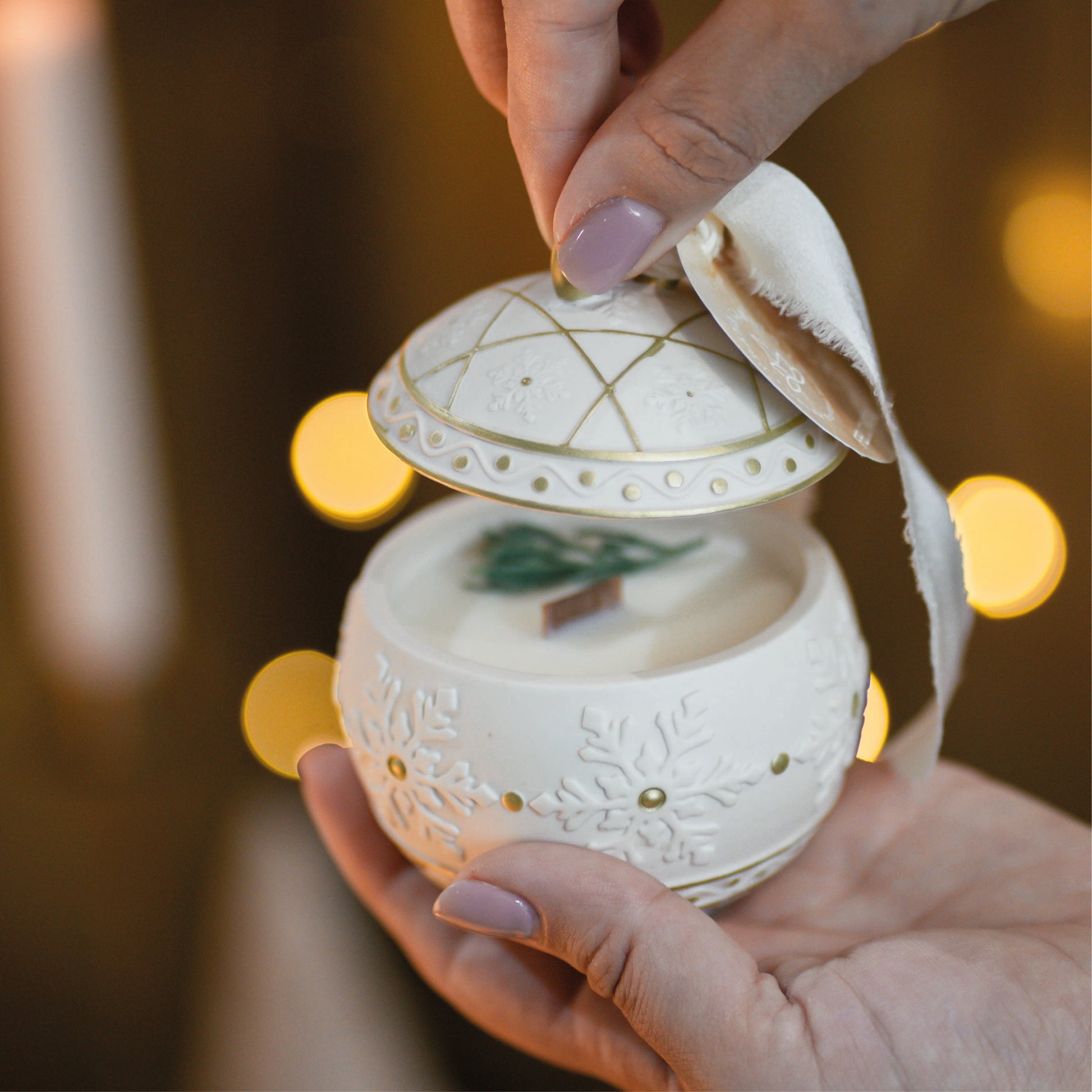 Feito à mão em jesmonite pela artesã Flor de Lis, um material ecológico e duradouro, este recipiente combina elegância e consciência ambiental. A textura suave e o relevo delicado em forma de floco de neve fazem dele uma verdadeira peça decorativa de Natal, perfeita para criar um ambiente acolhedor e festivo.